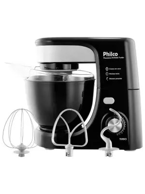 A bacia de Aço Inoxidável é um diferencial importante, pois não pega cheiro, não mancha e é mais higiênica que a tigela de plástico. O modelo PHP5000 da Philco oferece essa bacia de 4 litros com um motor de 500W (suficiente para a maioria das receitas, exceto as massas mais pesadas de pão). É a nossa escolha para quem prioriza limpeza e durabilidade do material.