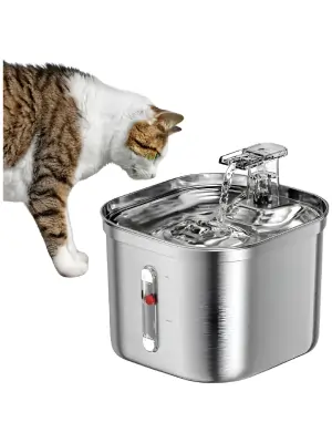 O Aço Inoxidável é o material mais seguro e higiênico para a saúde do seu gato, pois não libera substâncias tóxicas e é mais fácil de limpar. Este modelo genérico de Inox domina as vendas por ter capacidade ideal (2.5L) e um design que pode ter múltiplos fluxos de água, estimulando mais o gato a beber.